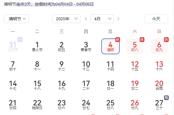 2025年清明節放假通知
